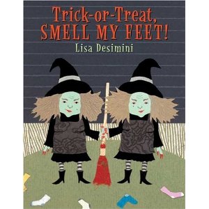 Growing up, we used to sing “Trick or treat, smell my feet, dance around the toilet seat” and the image of boogie-ing around the potty was always a show-stopper for me. Now, thank Heavens, we have Lisa Desimini’s “Trick or Treat, Smell my Feet” to entertain us just as hilariously. This is the tale of twin witches, Delia and Ophelia, who take it upon themselves (as all true witches do) to ruin Halloween for the sweet neighborhood kids. So, they concoct a spell using, you guessed it, stinky socks. All does not run smoothly for these identical hags, and your kids will adore the result. I do…almost as much as lambada-ing around the john.