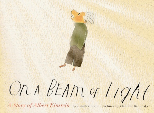 beam-of-light-feature-600x442Our elementary school librarian is wonderful for many reasons, not the least of which is her immaculate taste in books. So, when I was looking for a children’s book about Albert Einstein to read to my history students, I went directly to her. And, like always, she never ceases to amaze me. This time, her treasured eye turned me onto Jennifer Berne’s lovely 2013 book, On a Beam of Light: A Story of Albert Einstein. I must admit, what first caught my eye was the name of the illustrator, Vladimir Radunksy, who is one of my all-time favorites. (If you’re not familiar with the wonder of Radunsky, please take a peek at An Edward Lear Alphabet and I Love You Dude – two of his best illustrated works.) So, you have a fabulous illustrator, an equally fabulous author (Jennifer Berne of Manfish: A Story of Jacques Cousteau fame), and a fascinating subject…Add it all together and you’ve got an equation more brilliant than e=mc2. The book details Einstein’s childhood, as a quiet, rather introverted, yet deeply intellectual child who, for years, didn’t say a word. Legend has it his first words were “This soup is too hot!” And when asked by his parents why he didn’t speak before then, he responded, “Everything was fine until now.” With a wonderful attention to quiet details, like his favorite compass and his distaste for socks, On a Beam of Light captures the brilliance of this man while simultaneously making him accessible to a new generation of fans. And it doesn’t pander to children. It doesn’t dumb down the story of this man. Rather, it holds itself up to the standard that Albert himself might demand. And our children are better for it. For to read a special book like this is a gift all itself.