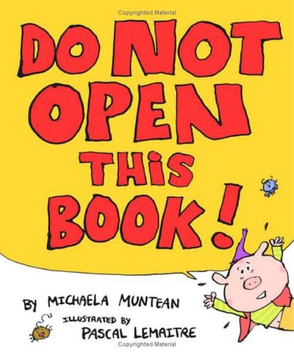 In the spirit of Mo Willem’s Don’t Let the Pigeon Drive the Bus (which, if you haven’t read it is just one in a series of the most delightful children’s books anywhere…just ask my children), Michaela Muntean’s hilarious book, Do Not Open This Book, gives kids free reign to disobey. A rather disgruntled pig is attempting to write a book, but can’t seem to get any work done since kids keep turning the pages on him. And while he becomes more and more agitated, your kids will become more and more delighted by the idea of driving this poor pig to absolute insanity. The fantasy elements of the pig nailing words to the wall to keep them from falling off the page and the subtext of having to choose one’s words carefully when telling a successful story are all part of what make this little book so entertaining. That, and Pascal Lamaitre’s cartoon-like illustrations bring the pig and his ever-growing frustrations to life. (For those of you old enough to remember the Sesame Street book Please Do Not Open This Book, featuring Grover and a bevy of furry monsters, the premise will seem similar…and yet it’s nice to see a new and different version done so well…) I dare you not to open this book. And I double dog dare you not to love it.