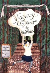 It’s a cold and rainy day here in Walnut Creek and, with that, comes the urge to snuggle in to our cozy little house and cook something delicious from scratch. And what better inspiration for utterly delicious and heartfelt recipes than Alice Waters’ Fannie at Chez Panisse – her children’s book that also doubles as a cookbook of fresh, wonderfully savory and child-friendly recipes. The titular Fanny is actually Alice’s real daughter and the first part of this book chronicles Fanny’s adventures at Chez Panisse, Waters’ award-winning restaurant in Berkeley, CA (which, if you’re ever in the neighborhood, you really must come!). The cooks, the bakers, the waiters and the maitre-d are all part of Fanny’s extended family and we all get to meet (and love) them in the process. And then, the recipes begin. And, oh, what recipes. Lettuce salad, 1234 cake, Peach Crisp and many more that will delight not just the children, but any adults who make their way into their delicious path. And did I mention the illustrations? Berkeley artist, Ann Arnold’s, watercolor prints are what make this book beyond spectacular. Just a hint..this book makes a delightful housewarming gift for children and adults…..a charming and lovely little treasure of a book.