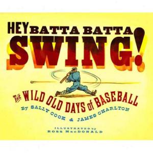 With Little League right around the corner for my son, baseball is in the air at our house. The Jeter jersey is in wardrobe rotation…the new batting helmet is shiny and ready…and we continue to monitor Panda’s rapid weight-loss…We’re also somewhat obsessed with Sally Cook and James Charlton’s awesome book, Hey Batta Batta Swing!: The Wild Old Days of Baseball – a fabulous step back in time to the beginnings of our nation’s favorite pastime. Complete with fun facts and anecdotes from games of yore, the book also features the vocabulary of old time baseball, including “soaking” which allowed for a runner who was off base to be put out by being beaned with a ball. Oooh, and a “can of corn”, which referred to a slow-moving fly ball. This book is a fun and informative romp through history and Ross MacDonald’s illustrations of baseball players with handlebar mustaches (and no, it’s not Randy Johnson) make it that much sweeter.