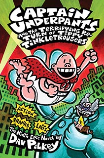 How thrilled was I to see a clothesline hung in my local children’s bookstore…strewn with multi-colored underpants. The occasion for such tighty whitey hi-jinx? The release of the latest in Dav Pikley’s beloved series, Captain Underpants! In stores next week, Captain Underpants and the Terrifying Return of Tippy Tinkletrousers, promises to surprise, delight and depants not only avid fans of the series, but newbies to the genre. (I promise a lengthy review once I can get my grubby little hands on it!) So, hang on to your boxers, briefs and (in some cases) granny panties. The Captain has returned!
